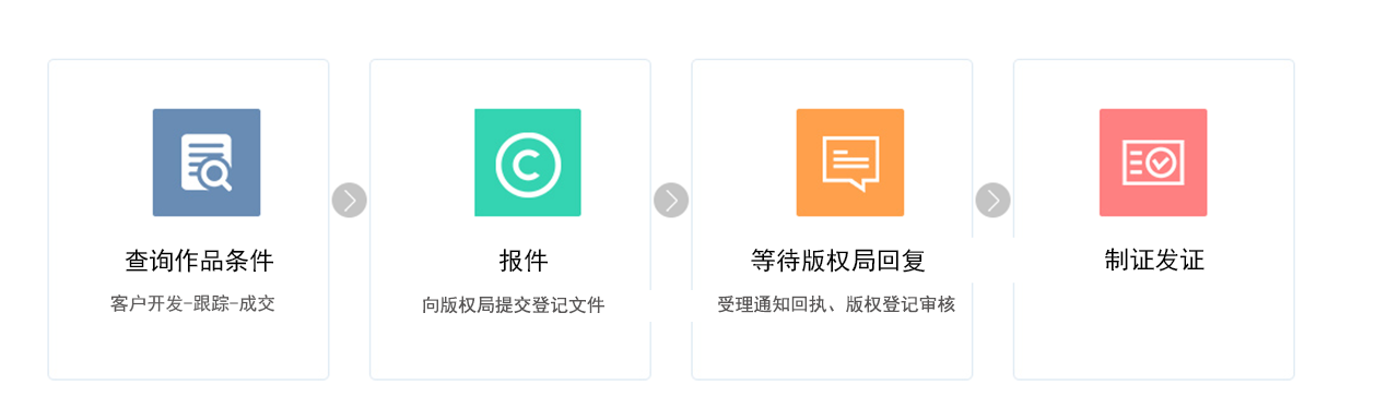 提供作品权登记1-30天的加急服务,以解您燃眉之急;