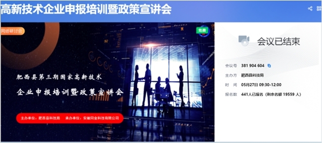 肥西县第三期国家高新技术企业申报培训暨政策宣讲会