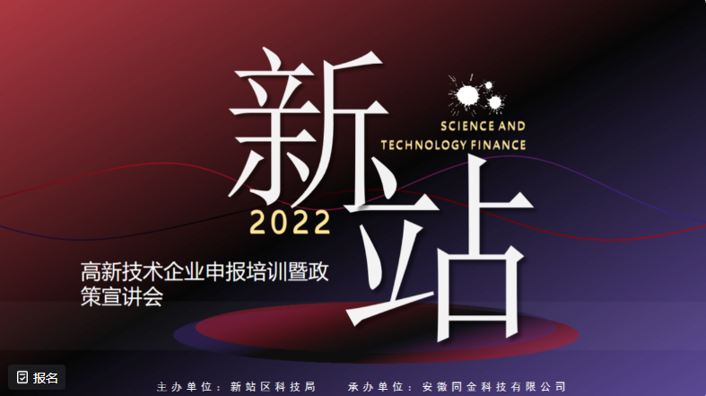 会议名称:合肥市新站区 高新技术企业申报培训暨政策宣讲会